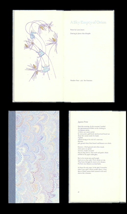 expressing solitude and wonder.28 pages. 5 1/2 x 10 inches tall. $50 top: Title spread. Drawing by Janice Mae Schopfer. Title in Goudy Open type.