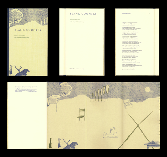in her tightly woven, strongly crafted style.34 pages. 7 x 12 inches tall. $85 above left: Cover. Detail of lithograph by Madel Greger. Cloth spine and printed Fabriano Roma sides over Museum boards.