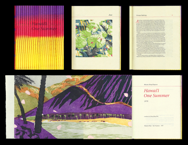 bottom: Title page. 22-inch fold-out landscape woodcut by Deng Ming-Dao. Title in red handlettered by John Prestianni. Order from: