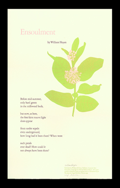 Broadside. Published by William Ewert. Garamond types on Arches cover.
