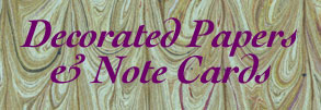 Handmade Note Cards The front of each folded card displays one or more swatches of paste or marbled paper on various colors of card stock. An envelope is included and both are protected by a snug plastic bag. 4 1/2 x 6 1/4 inches tall. $3 eachOrder decorated papers. blank books, and note cards: All orders payable in advance by check to "Leigh McLellan," except institutions and booksellers. (Sorry, credit cards orders are not taken.) California residents add appropriate sales tax. Shipping extra. Booksellers' discount: 25%.